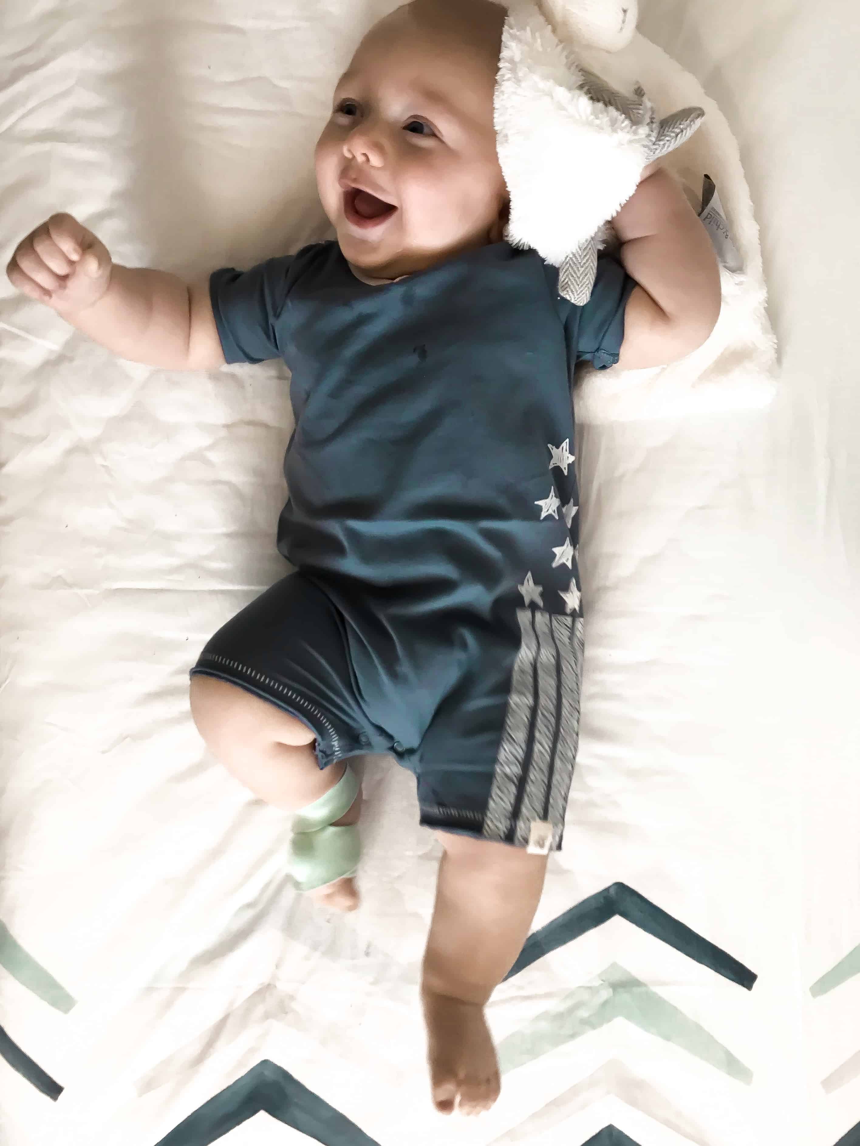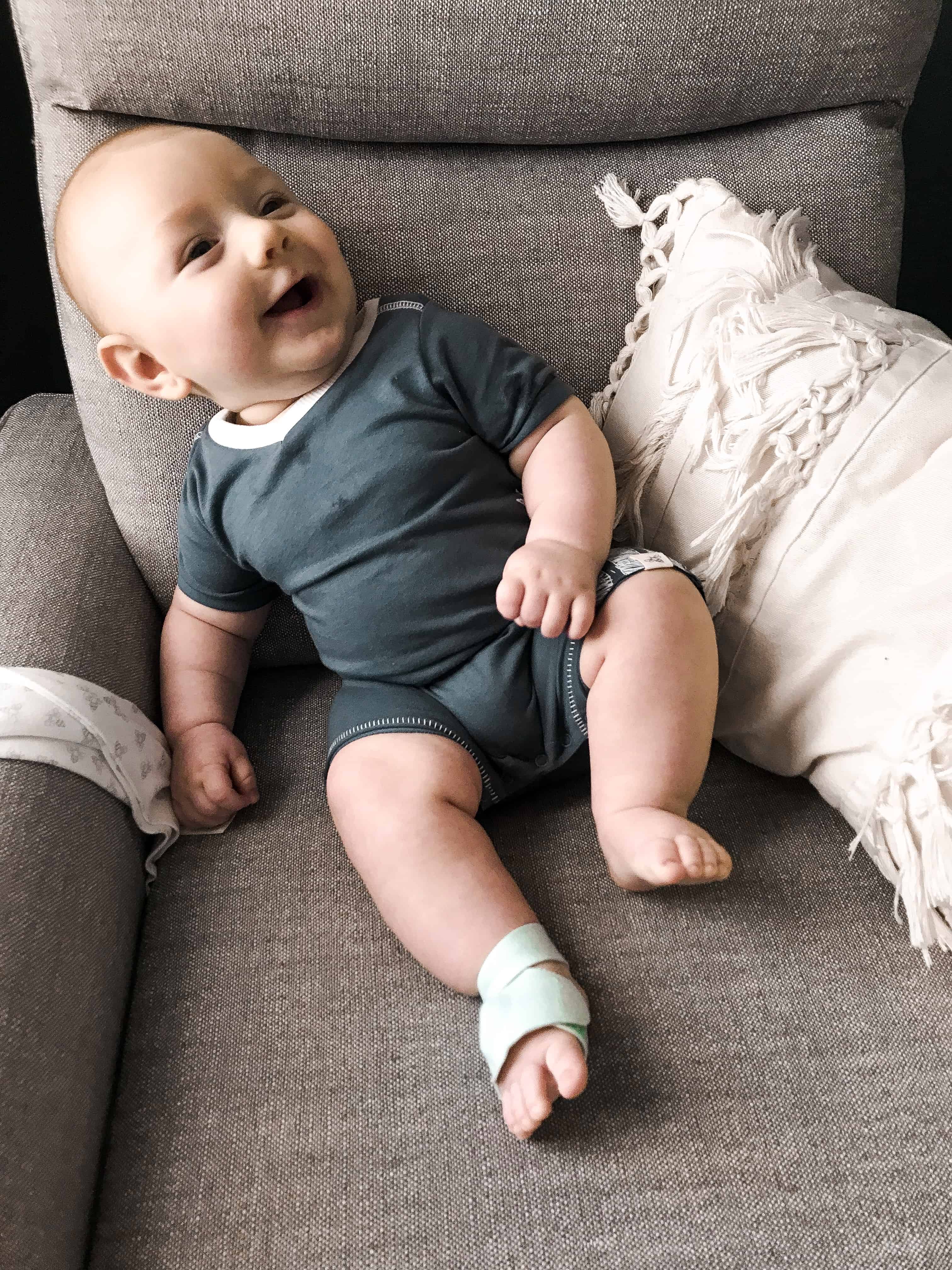 - Owlet SmartSock – This has saved both my sanity and lots of sleep!! The Owlet sock tracks your baby’s heart rate and oxygen levels and alerts you if they fall out of normal range. I have never once had a false alarm in all 4 months of Brooks’ life. It is pricey, but if you want to save $100.00 on the product you can purchase a certified refurbished Owlet (which in my opinion would work even better since it’s been through more rigorous testing)! I’m telling you, this thing is worth the money. I do think the makers of the product are sort of preying on the fear of new parents, but it worked! The peace of mind that comes with knowing I’d be alerted if something went wrong allows me to fall asleep much easier (and keeps me from abruptly jumping out of bed to check if he’s breathing in the middle of the night). If I ever wake worried, I simply glance at the base station and the green light puts my mind at ease without ever having to get out of bed. I know “babies survived just fine in the old days” without this technology, but we have it and it saves me a LOT of worry, so no shame here!