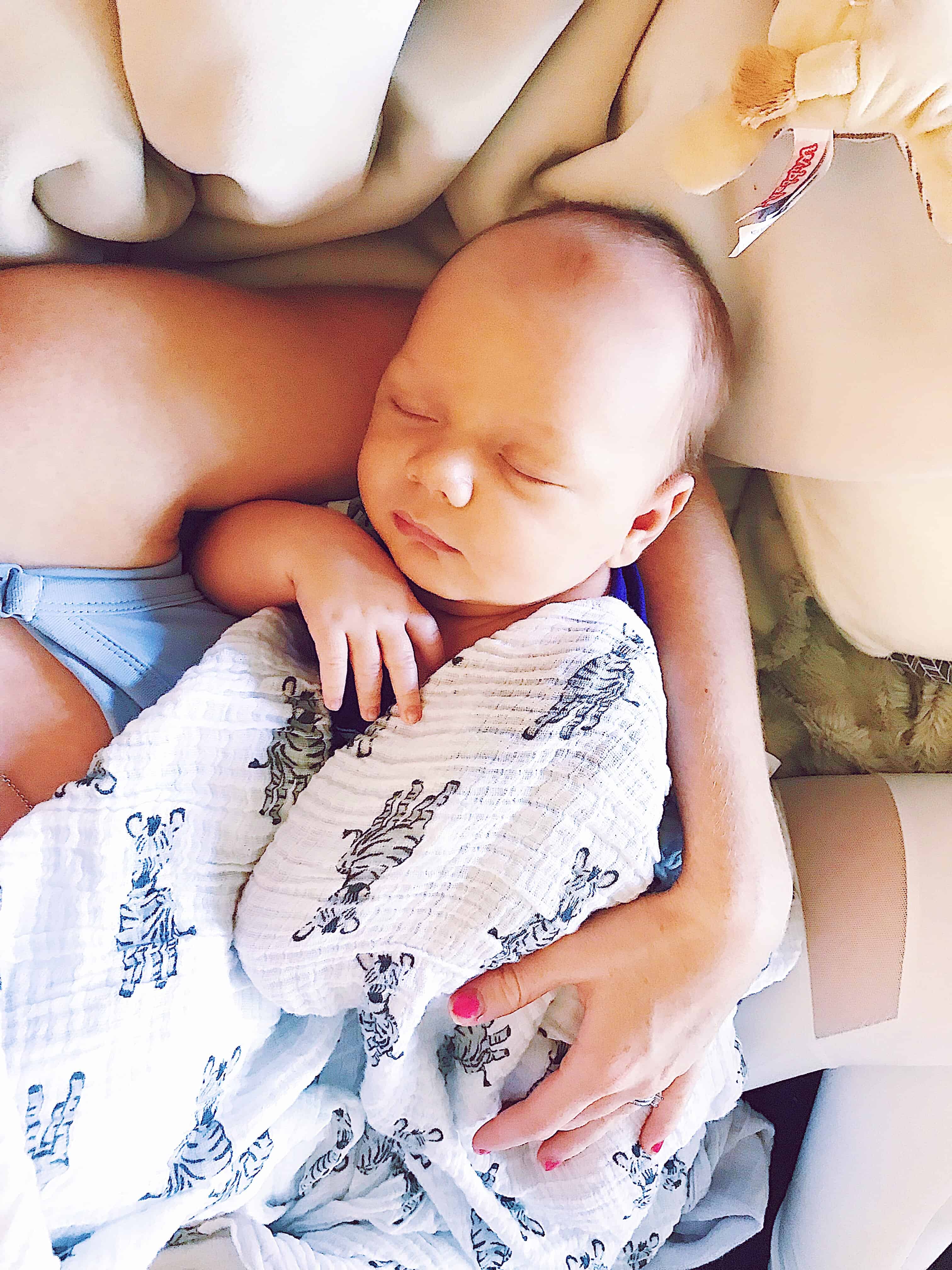 - Doc-A-Tot – or some variety of baby snuggler that fits in your bassinet (I’ve heard great things about this Snuggle Me Organic snuggler and it is a more affordable option). We used the Doc-a-tot SO much. It was the only thing he would sleep in horizontally and was the easiest way to move him around while he was asleep. If we wanted to move him from the basinet to the couch, we just grabbed his doc-a-tot with him inside instead of waking him up during the transfer! If we traveled, the doc-a-tot allowed us to bring the same “bed” he’s used to wherever we went without lugging his whole bassinet system (we just plopped the whole doc-a-tot down next to us in our bed if we stayed the night somewhere other than home). If I had to run to the restroom, I grabbed the lightweight doc-a-tot and set him in it on the floor for a minute (as opposed to holding him or lugging the carseat in the room). Another version of the “everything pillow” in a safe bed form… this thing was SO helpful!