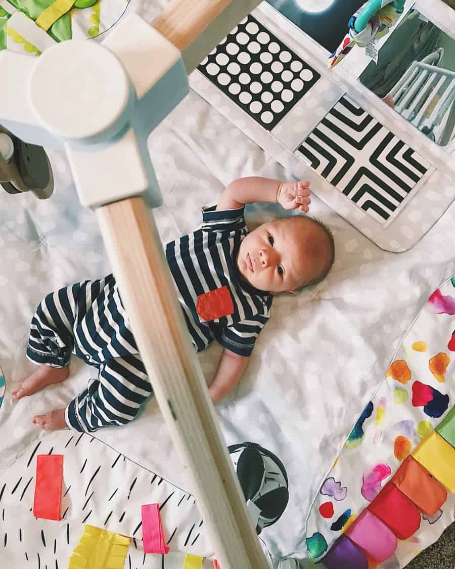 - Momaroo – If you’re building a baby registry, I’m certain you’ve heard of the magical 4Moms Momaroo! This was definitely on our “wish list” and we were fortunate enough to have it gifted to us. The verdict – it is as good as it sounds! I’ll be honest, we don’t use all the techy-features it has (I downloaded the app and used it for maybe a few days), but the contrast hanging balls and the motion/sounds of the momaroo were perfect for putting baby to sleep! It was often the only thing I could put him in while he was awake without him crying for me to hold him!